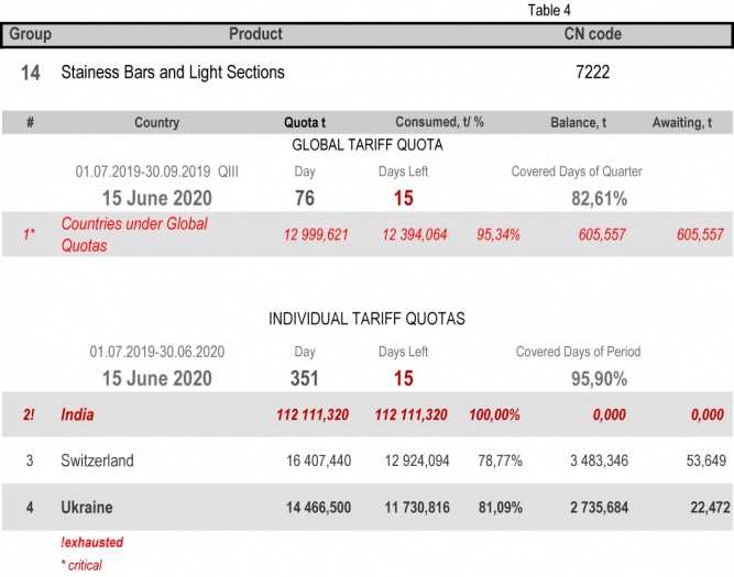 - Category 14 (Stainless Bars and Light Sections): the individual tariff quota of the 2nd period for India;
