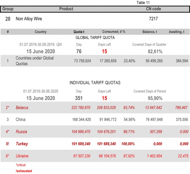 - Category 28 (Non Alloy Wire): the individual tariff quota of the 2nd period for Turkey.