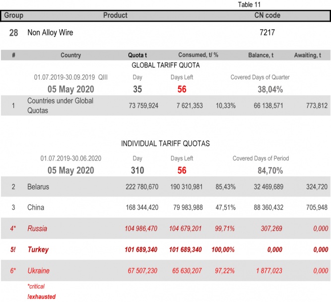 - Category 28 (Non Alloy Wire): the individual tariff quota of the 2nd period for Turkey.