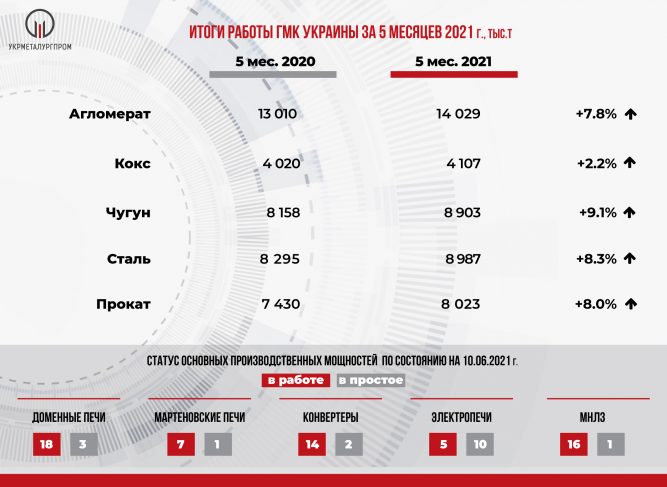 Итоги работы ГМК Украины за 5 месяцев 2021 г.