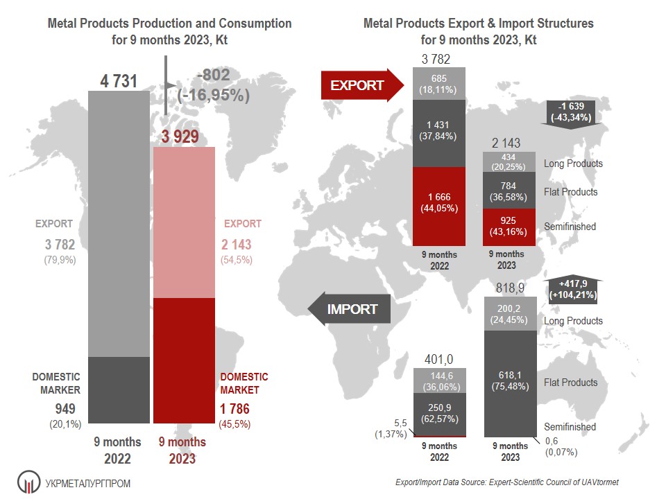 Metal Products Production and Consumption for 9 months 2023 in Ukraine