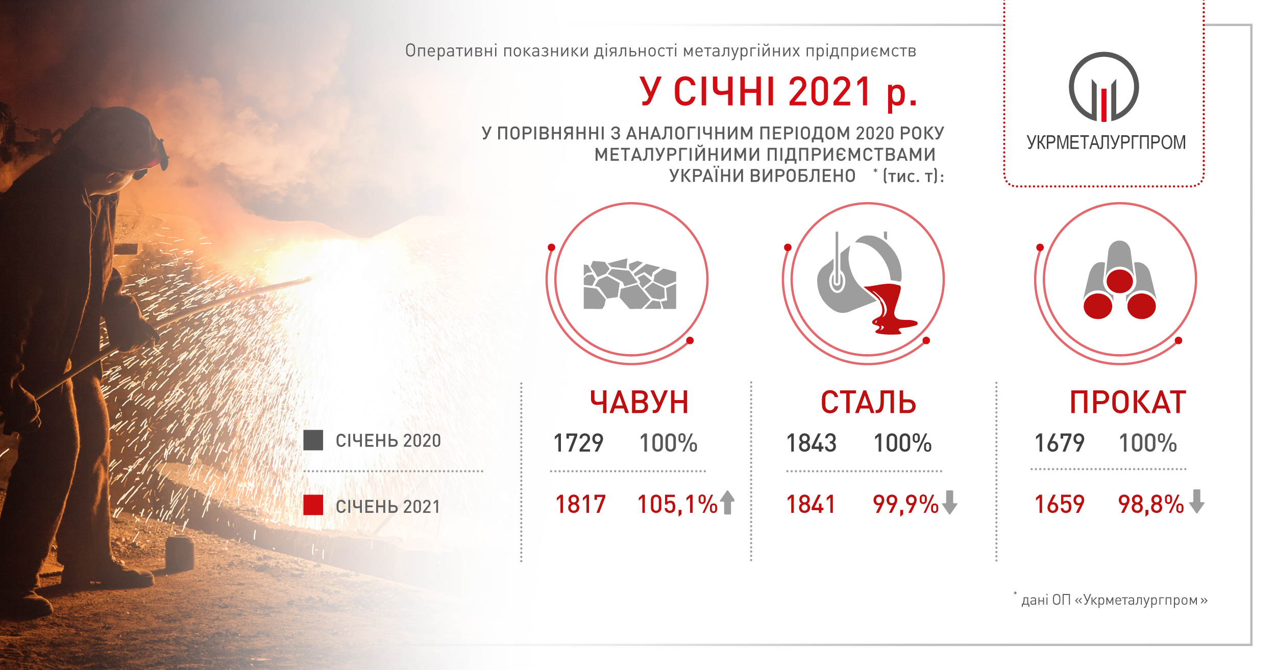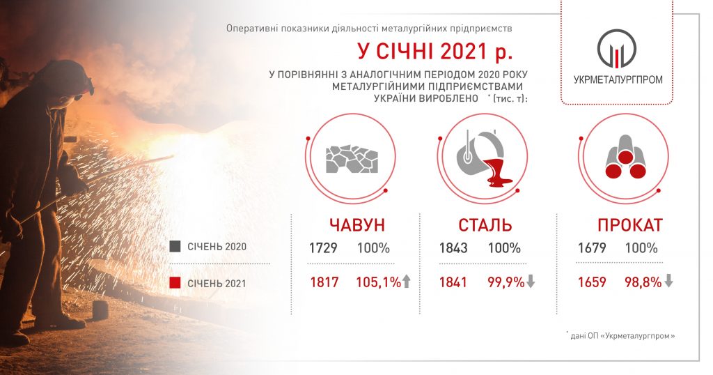 За попередніми даними ОП «Укрметалургпром», у січні 2021 року вироблено: