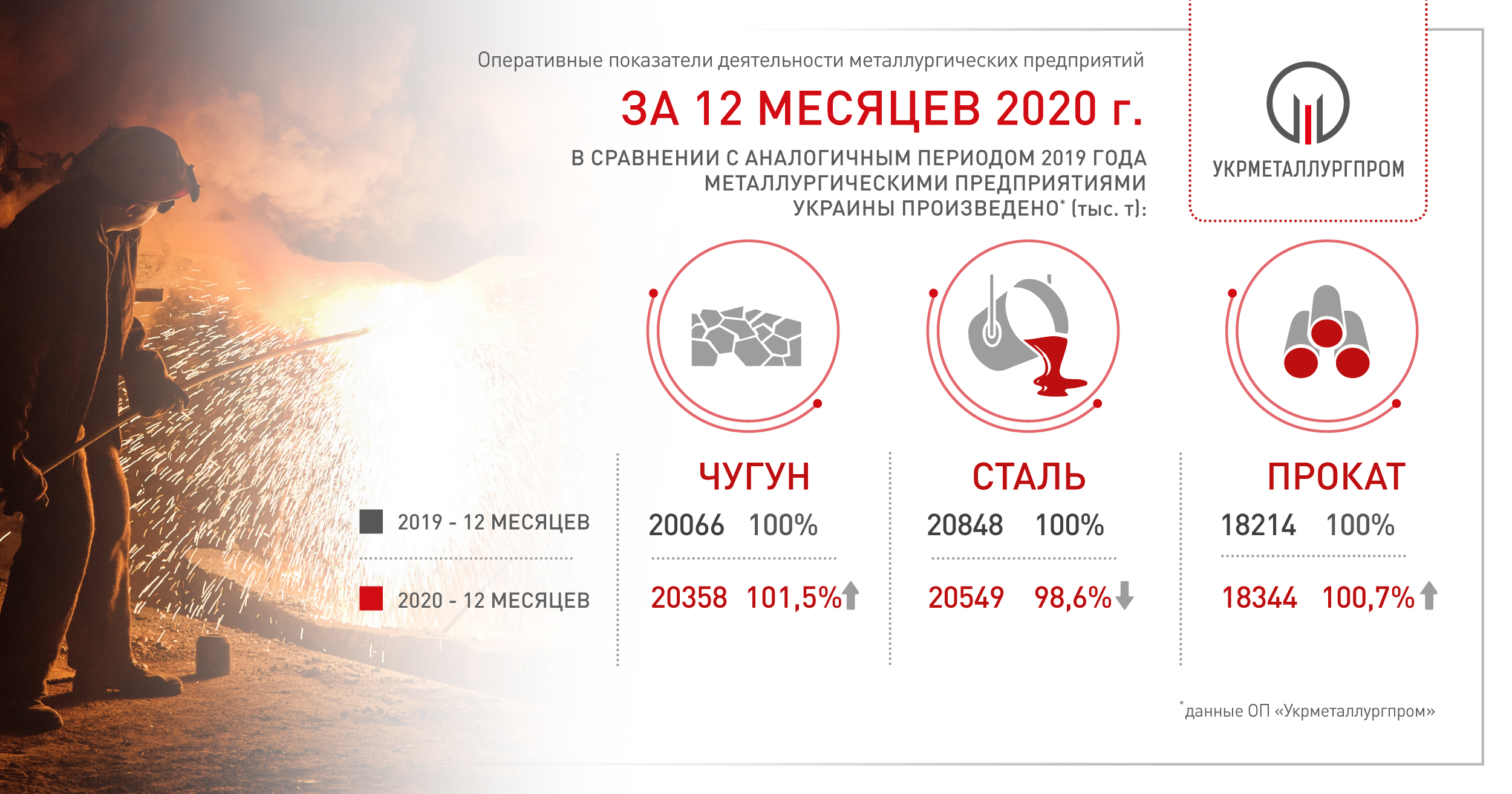По предварительным данным ОП «Укрметаллургпром», за 12 месяцев 2020 года произведено: