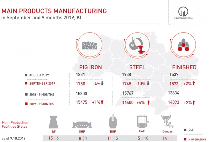 It is supposed to produce in November 2019: of Pig Iron – up to 1.70 Mt, of Steel – 1.75 Mt, of Finished Products – 1.60 Mt