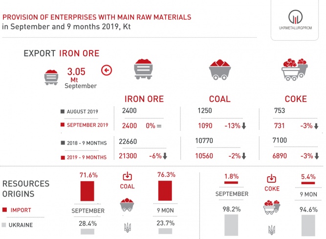 In September 2019 Ukrainian steelmaking enterprises received up to 2.4 Mt of IORM (100% to August 2019).