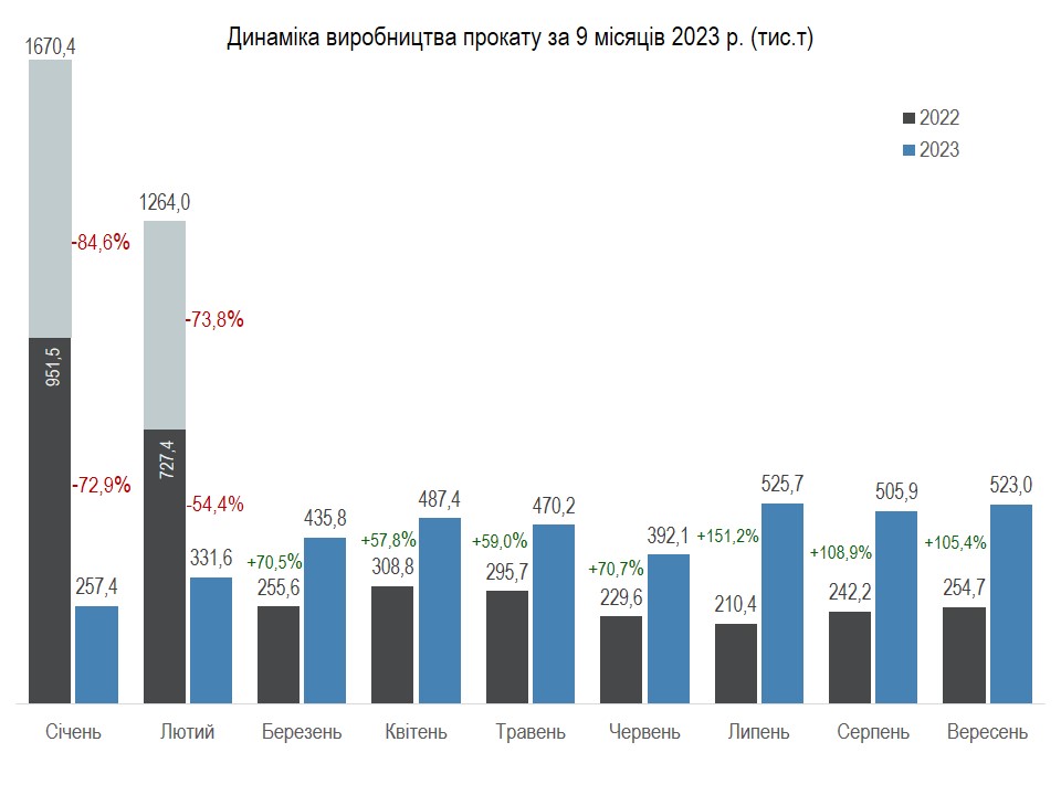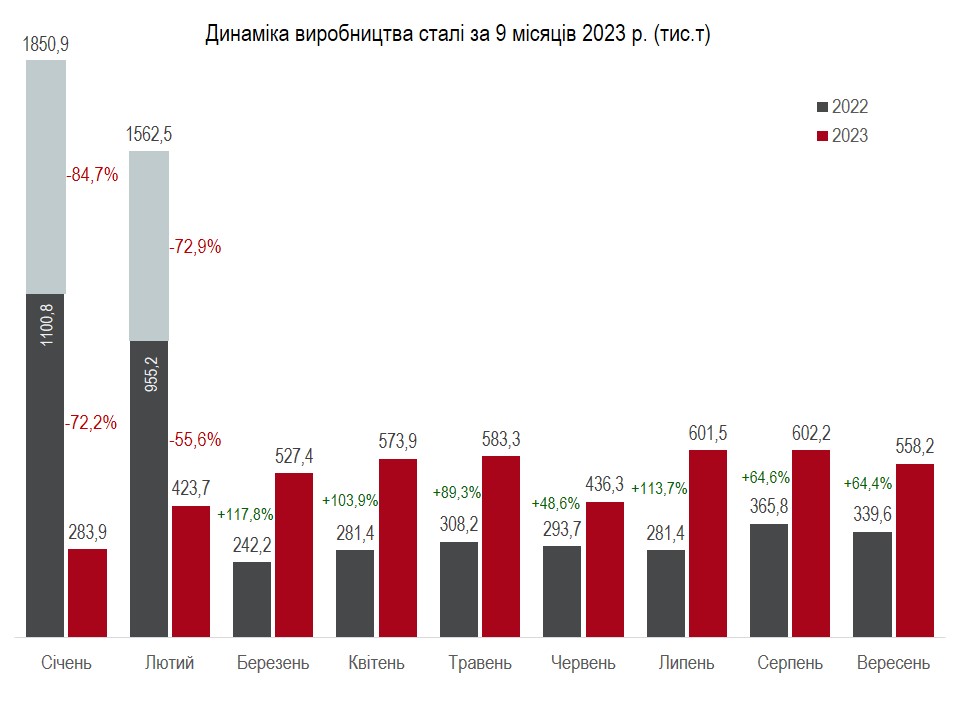 За даними ОП «Укрметалургпром», в січні-вересні 2023 року вироблено: