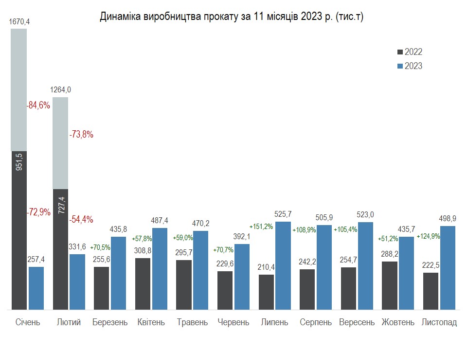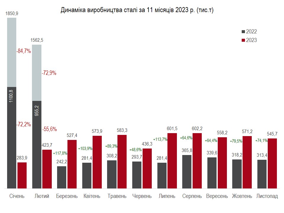 - чавуну 5,45 млн т (88,7% відносно січня-листопада 2022 р.);