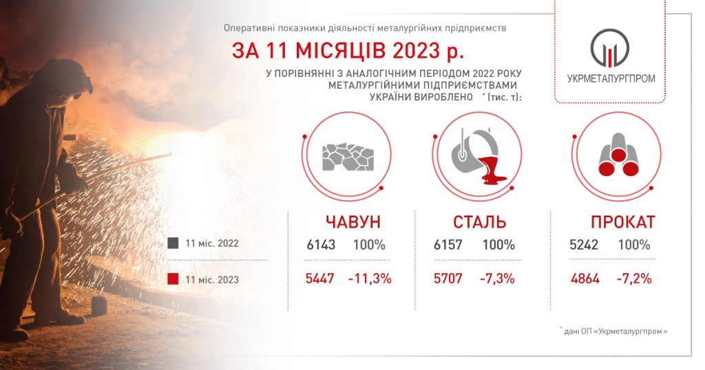 За даними ОП «Укрметалургпром», в січні-листопаді 2023 року вироблено: