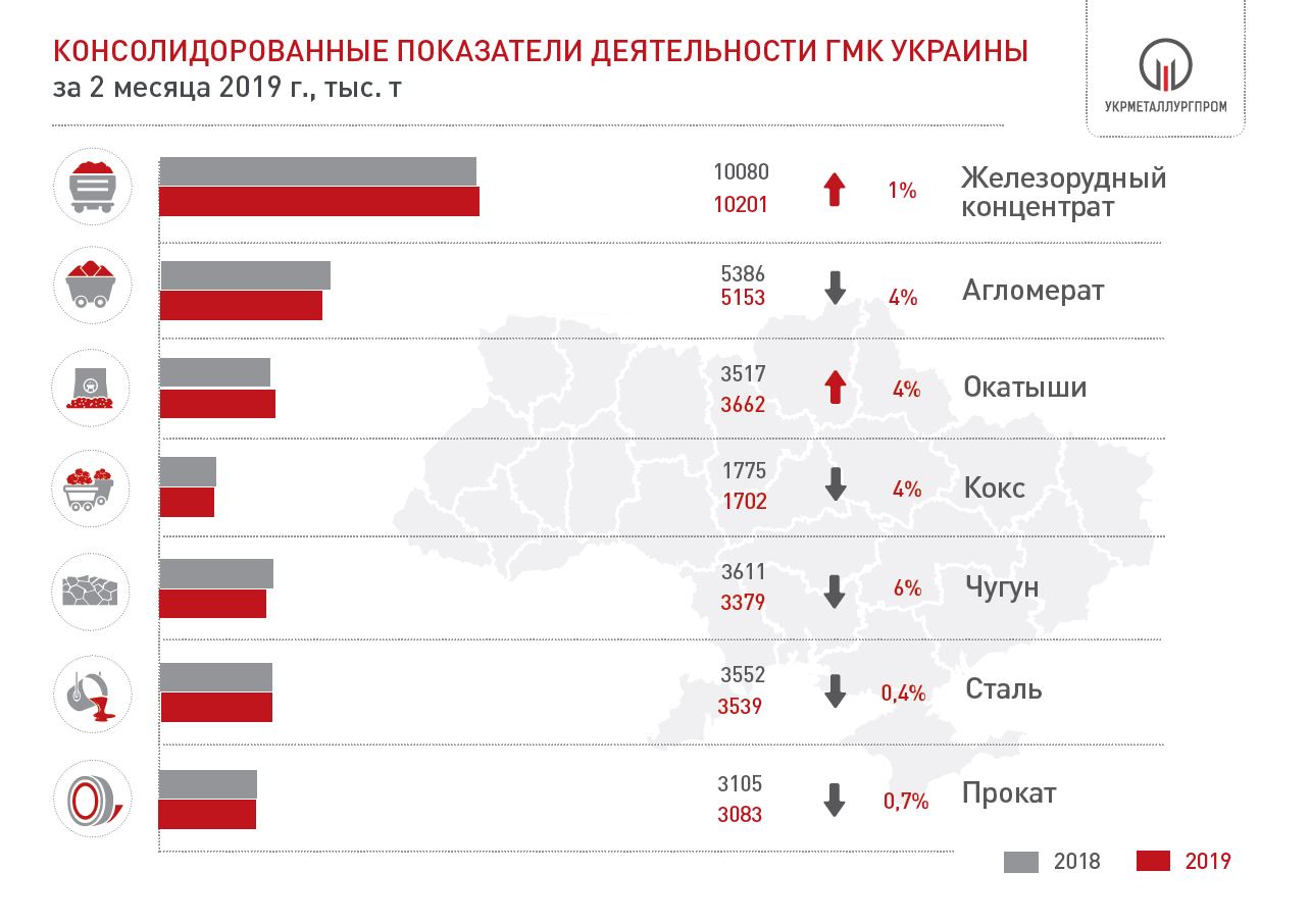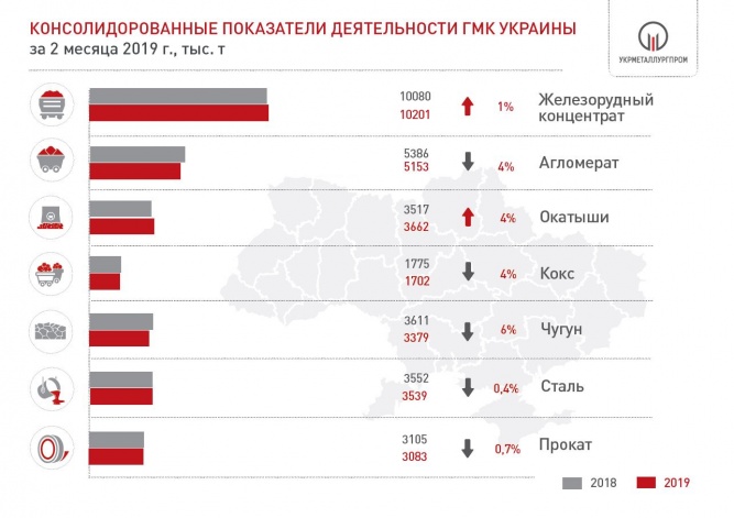 Результаты деятельности ГМК Украины в феврале и за два месяца 2019 года
