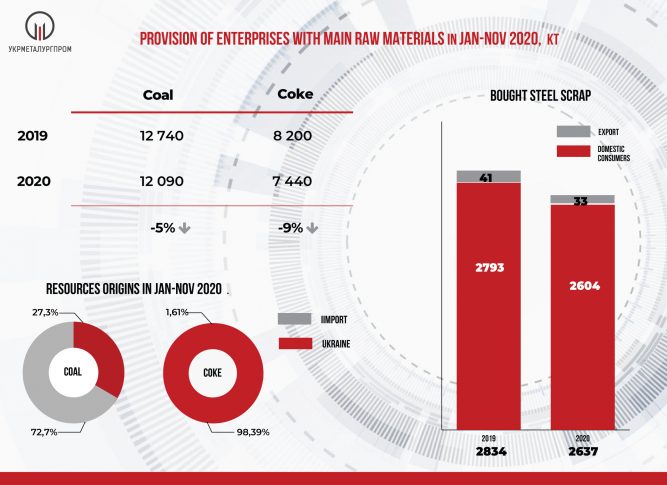 Taking into consideration the low production of metal products, the provision of steelmaking enterprises with IORM in Jan-Nov 2020 was on the level matching the steelmakers’ demands. There was no import of IORM within this period.