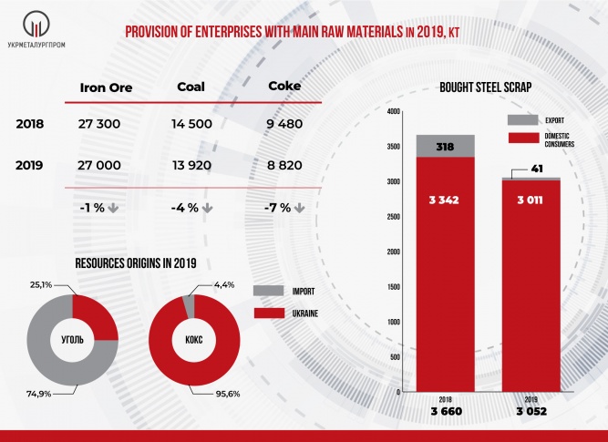 In 2019, of collected 3052 Kt of steel scrap (830% to 2018), Ukrainian consumers were supplied with 3011 Kt (90% to 2018), and 41 Kt were exported (13% to 2018).