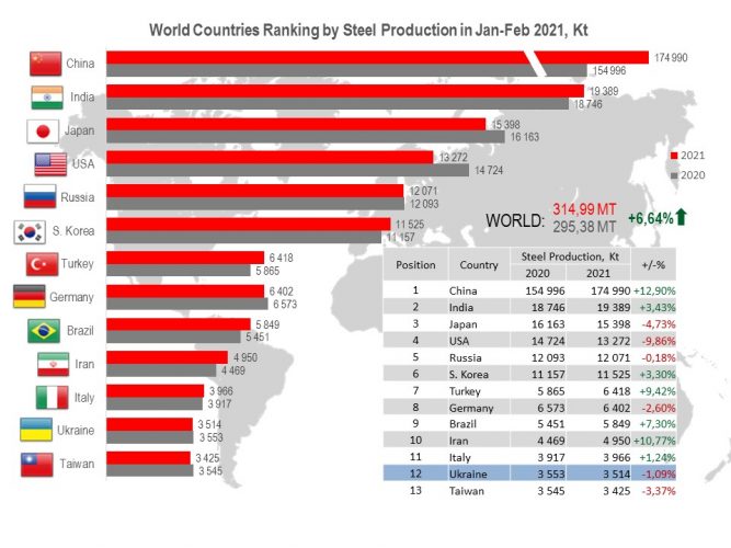 Ukraine in the World Ferrous Production in Jan-Feb 2021